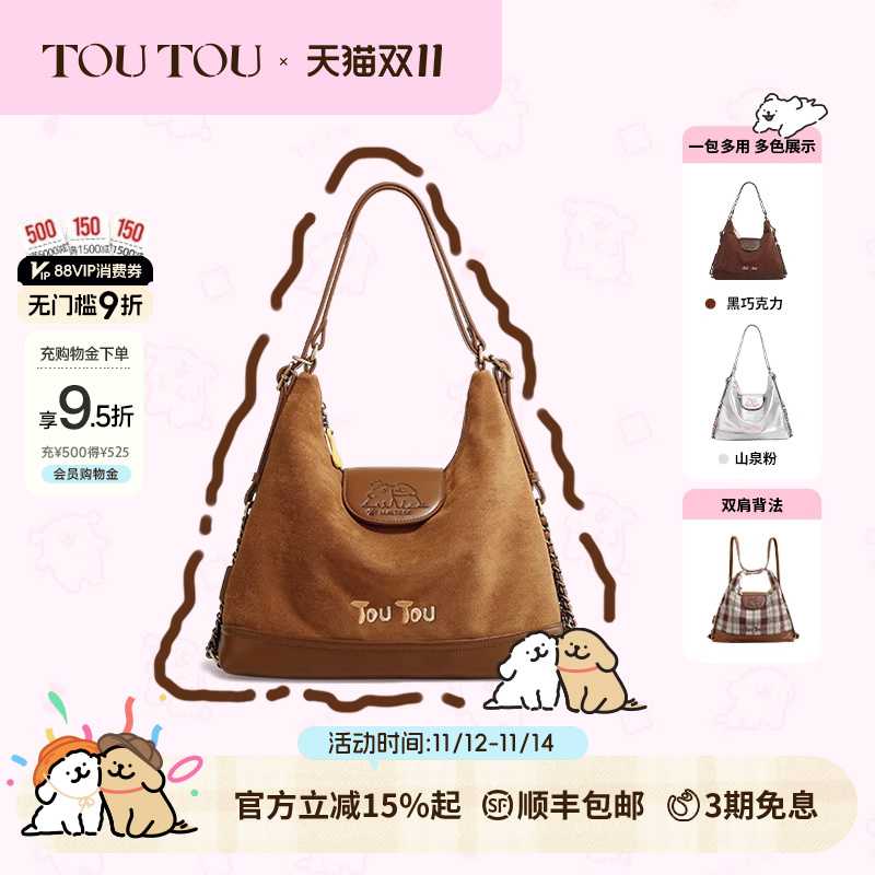 TOUTOU线条小狗双肩包女大容量通勤托特包百搭单肩腋下包生日礼物 ...